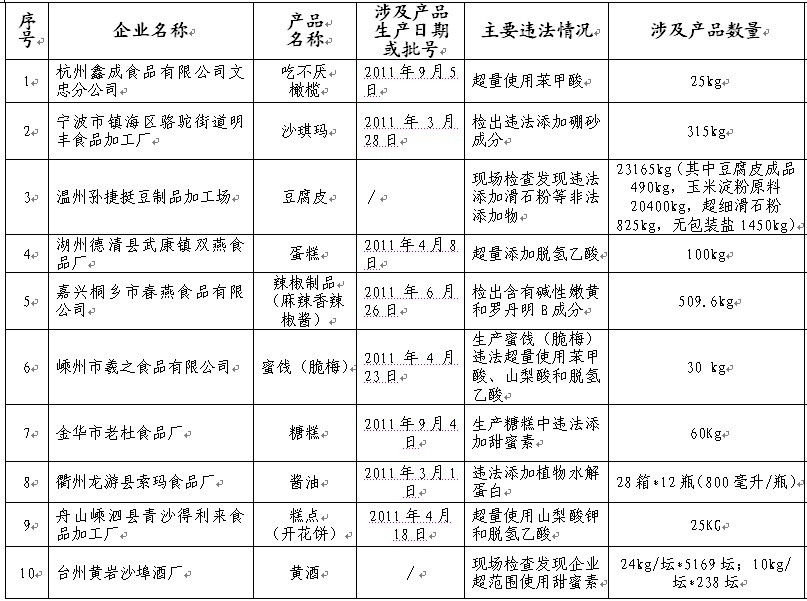 浙江重拳出击违法滥用添加剂 10家食品生产企业上“黑名单”