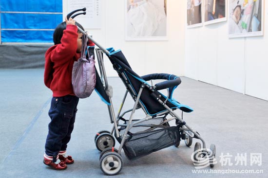摄影节现场专门设置了一片区域展览跟妞妞有关的一些新闻照片,叫“手的力量”。别看童童还是个小不点,却已经知道看新闻了,坠楼的妞妞就是她熟知的一个新闻人物。童童看到满墙的妞妞照片,很高兴,还说“我最喜欢妞妞了”!