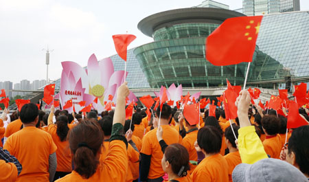 中央文明办和中宣部主办的“激情广场”众歌咏活动在杭州大剧院广场隆重举行
