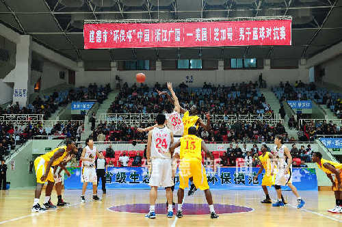 杭州网讯 10月24日晚,由浙江省体育竞赛中心和建德市人民政府主办,建德市体育局承办的建德市“环保杯” 中美男子篮球对抗赛新安江体育馆隆重举行。中方是浙江广厦猛狮俱乐部男子篮球队。该篮球队2005年成立以来,先后获得过全国男子篮球联赛冠亚军,并于2006年成为中国男子职业篮球联赛联盟成员,是省内篮球强队之一,其中队员威尔森·钱德勒曾效力于NBA纽约尼克斯队。
