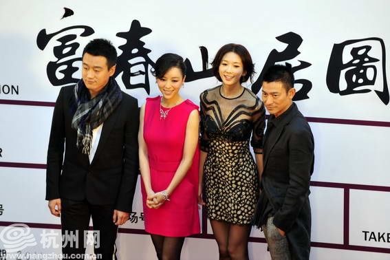 杭州网讯 今天下午,刘德华、林志玲、张静初和佟大为乘坐画舫,亮相在西子湖畔平湖秋月举行的电影《富春山居图》的开机仪式。