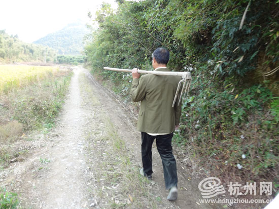 太阳透过密密麻麻的竹林,将柔和的光线洒在我们脚下弯曲的坡路上。沿坡而行,一个正在耕作的身影出现在我们的视线中。说来也奇怪,几百亩的林地里唯有他一人,除草、拭汗,再除、再擦,反复这2个动作。