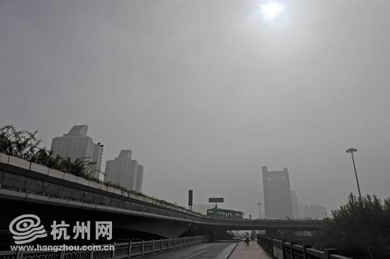 杭州网讯 一直到中午,太阳才从云层中隐隐约约地探了探头,但很快又缩了回去。浓雾则是一整天都没散尽。