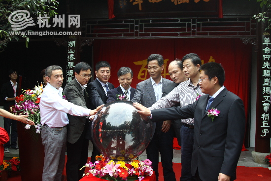 与会领导与嘉宾共同触摸水晶球,章太炎纪念馆正式开馆。