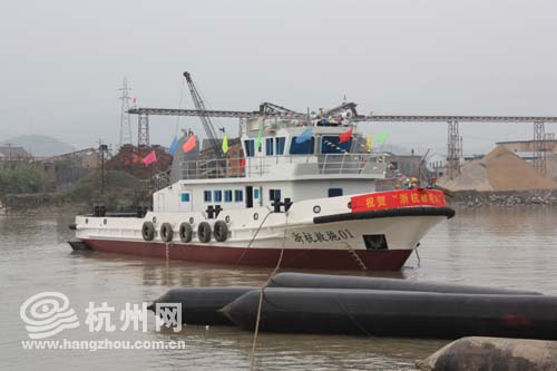 杭州网讯 今天,钱塘江首艘大吨位拖救艇正式下水。这艘拖救艇总长32.08米,总拖救能力10吨,最长的行驶时长180小时,是目前钱塘江上最大吨位的搜救艇。