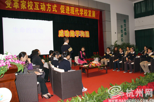 可怜天下父母心,我们这一代做大人的,大多都只有一个子女,谁不想孩子找到一个好学校?一位优秀老师?孩子成绩优良,在学校养成良好习惯。11月15日,中国杭州国际教育创新大会(文晖论坛)“家校互动方式变革与学校发展论坛”进入第二天。令人深思的教育电影,寓教于乐的亲子活动,值得一听的家长沙龙……每个事例无不关系到每位家长在孩子的成长途中,都会碰到类似的情况。《中国德育》杂志社社长助理、发展部主任温建锋先生、《中国德育》杂志社编辑部刘烨主任、下城区教育局高建梁副局长、下城区社区教育中心书记、局德育研究室陈怡主任以及来自全国各地的代表们来到了杭州市大成实验学校江心岛校区参观及参加了以“有效的亲子沟通”为主题的家长成长沙龙活动。