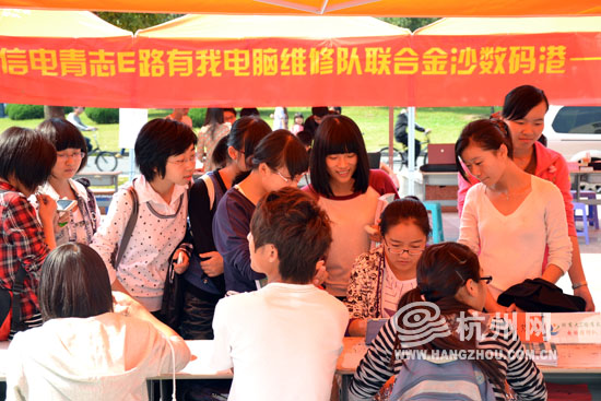 从10月18日起,浙江工商大学信电学院青年志愿者“E路有我”电脑维修队联合金沙数码港开展了“天使之翼”下沙巡回免费电脑维修活动。活动主要为各下沙高校师生提供硬件清理,系统重装,系统优化及数据恢复,电脑购买咨询等服务。至11月13日,电脑维修队已经开展了浙江工商大学、杭州经济职业技术学院、杭州师范大学三站活动,为这些高校1200余位同学提供电脑方面的免费服务,受到了这些高校学生的追捧。
