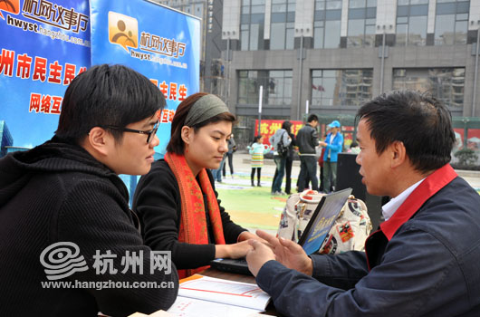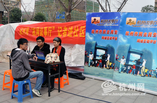 在位于古墩路社区的莲花广场上,来来往往的人可不少,杭网议事厅“记者进社区”活动的横幅刚拉起来,就有不少社区居民上前来询问。“听民意,就是说我们有啥想法就都能说咯?”“我们的想法市里面能知道吗?”大家显然对议事厅这个平台充满了兴趣,在得知 “杭网议事厅”计划在社区内发展“民情观察员”,不少社区居民都跃跃欲试。