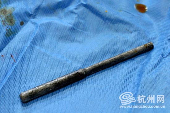 主治医生曹延广告诉记者,金属杆还好是从肌腱之间穿出的,没有弄断骨头,算是不幸中的万幸。现在,练吉明的手被缝了三针,缠上了厚厚的纱布,医生说,接下来还要拍片子确定一下伤情,并进行消炎处理。
