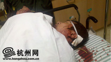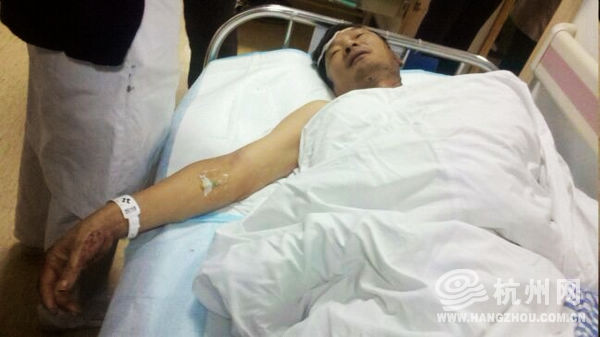 的哥躺在医院伤口还在流血