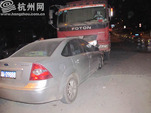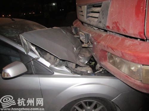 网友老朱给杭州网热线85052222爆料,昨晚,火车东站附近的环站西路上,一辆福特车转弯转错了车道,迎头撞上了一辆工程车,车上一个十几岁的小姑娘受了伤。