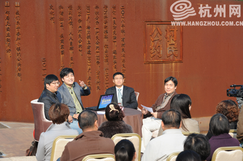 《村民公约》出台后,村里的不文明现象是否就此消失?良渚文化村参加今天访谈的居民代表发表了自己的意见,有人说,《村民公约》带来的进步,首先是居民有了文明意识的萌芽。小区里有个包子店生意很好,经常要排队,一般来说居民都自觉遵守秩序,有时出现插队的个别人,大家就会以一种善意的提醒“你是村民吗?”来避免这种现象,又化解了尴尬的场面。