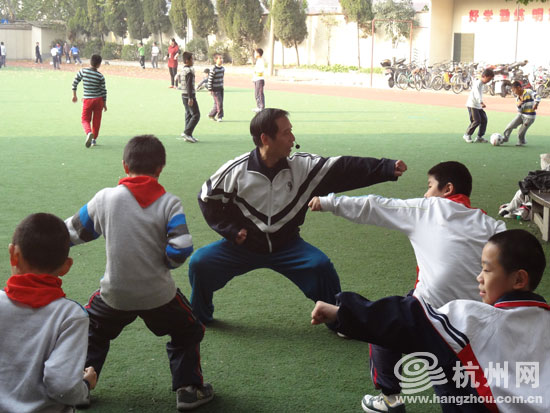 离开的时候,记者还看到操场上的一群群学生,有的在练武术、有的在打太极。虽然很多同学的动作看上去都还不到位,但小家伙们表现出来的神情似乎在告诉我:我已经尽力了!教的老师看上去也都是上了年纪的,但尽管如此,他们并没有放任同学们的动作不合要求,而是挨个的示范、指点。