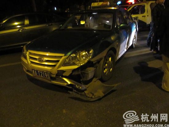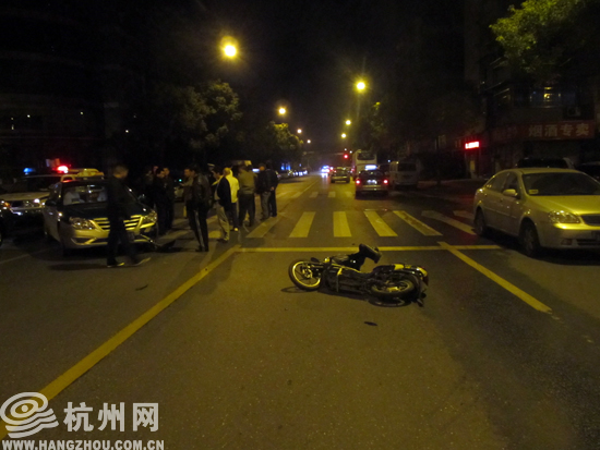 杭州网报料热线85052222接到老朱爆料:昨晚发生了一起出租车撞电瓶车的事故。