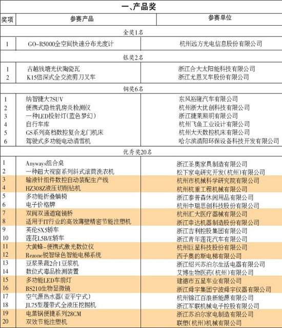 2011“创意杭州”工业设计大赛产品奖获奖项目名单