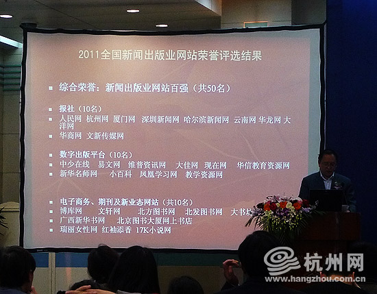 杭州网讯 11月26日,在北京召开的2011全国新闻出版业网站年会上,杭州网荣膺“新闻出版业网站百强”和“最受欢迎的党报党刊网站”称号。