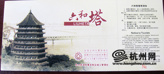 从12月1日起,来杭州六和塔的朋友,都将收到一份别致的礼物——六和塔新版登塔明信片门票。