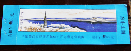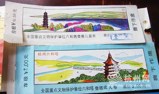 黄秀英告诉记者,六和塔从1979年开始收票,首批门票定价为0.3角。至今,黄秀英还珍藏着自己刚工作那年的部分版本门票,那时候,登上六和塔遥望钱塘江,已经需要1角钱了。