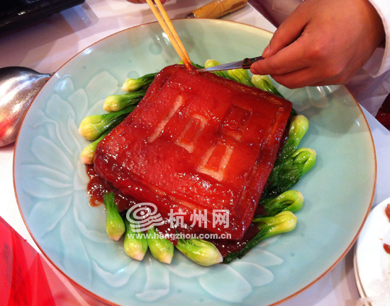 “一品南乳肉”的“一品”二字是用筷子和小刀刻出来的。