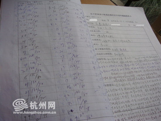 杭州网记者翻看了赵阿姨的三大本社区老人健康卡,发现大部分人的血压都偏高。