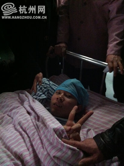 可就在这时,江建冲着镜头笑着比了一个“V”的手势,心情状态极佳,在病床旁的手足无措的父母看在眼里顿时笑了出来。