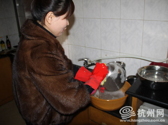 临走前,母亲余丽辉已经在宽敞的厨房里忙碌起来,洗碗、刷锅……