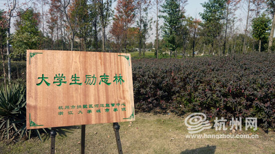 12月16日下午,浙江大学城市学院的80多名大学生代表该校80个社团在校园里认养了城市河道纪念林,这片纪念林沿着校园河道两边,面积2000多平米,被大学生们称作“励志林”。大学生们纷纷在木制纪念牌上写下祝福,挂在自己认养树木的树枝上。