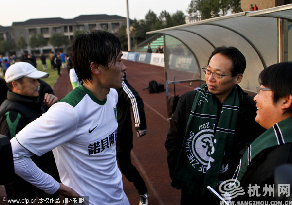 杭州网讯 今天对绿城俱乐部和球迷来说都是一个特殊的日子,既是绿城队新赛季的第一个基地开放日,也是绿城队新任主帅冈田武史正式开始执教工作的第一天。下午三点钟,绿城队和来访的大连阿尔滨队进行了一场教学比赛,冈田武史和球迷们一起在场边观摩。先入一球的绿城队后来被对手连扳两球,1比2输掉了比赛。在昨天进行的双方第一场教学赛中,绿城队同样是1比2告负。