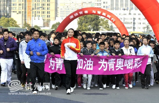 同时,由杭州市体育总会组织的全市大专院校1500余名青少年齐聚黄龙体育中心主会场,参加“全国青年迎青奥”长跑活动杭州站启动式。选手们沿求是路、玉古路及黄龙体育中心内场进行健身长跑,全程约2500米,真正实现了让青少年从运动中收获健康的生活方式,让奥林匹克精神能够在青年人中发扬光大的目的。 |