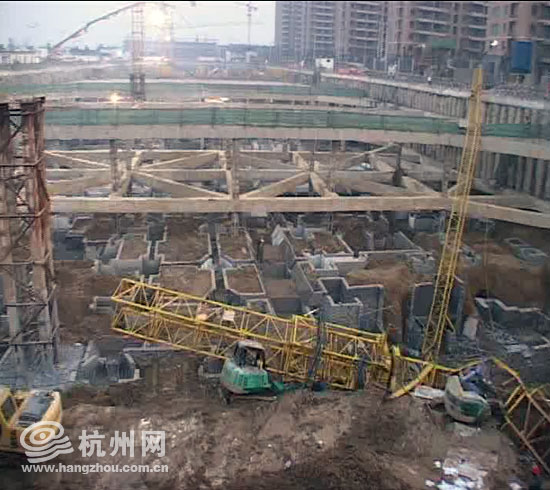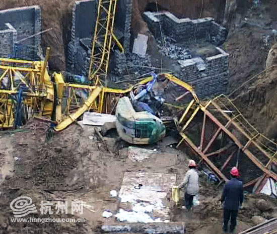 3时44分,消防官兵赶到事故现场,发现一辆重型塔吊倾倒在8米深的建筑工地地基坑内,塔吊的前臂落在了坑道的边上,吊臂断掉后直接压在了一架挖土机上,驾驶员被牢牢地压在了挖土机驾驶室内。