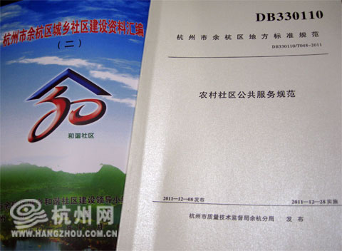 “农村社区公共服务如何让广大农民满意?除了要在硬件设施方面给予配套,作为政府部门更要把软性服务做好。”余杭区民政局局长周虎勇介绍,这份《规范》由区民政部门起草,集结了区里20多个相关部门的力量,一起向广大农村干部、群众征集意见建议,期间也作了大量的现状调查摸底,研究了多年的工作数据,最后确定了这份包括17项内容和7项规范性附录的《杭州市余杭区农村社区公共服务规范》。