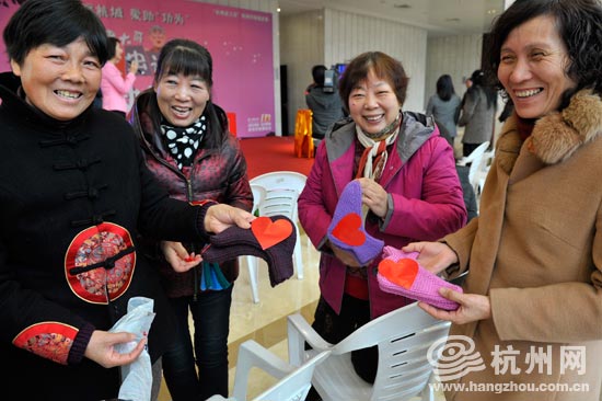 屠桂玉老人是个热心肠,在嘉绿苑社区生活的残疾人、90岁以上的老人、困难群众、外来务工人员,都拥有一双她亲手打造的“温暖牌”毛线手工袜,至今已经送出了733双。