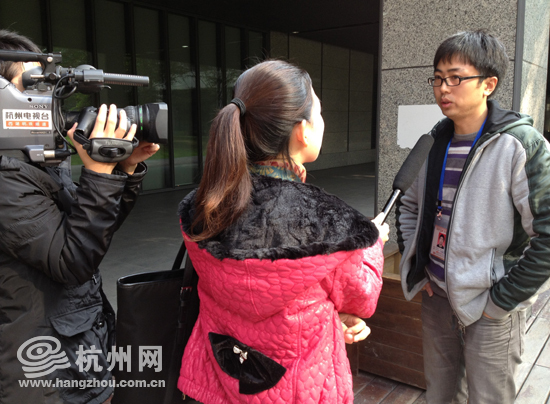 “杭网议事厅”推荐的市民代表周震声接受电视台采访。