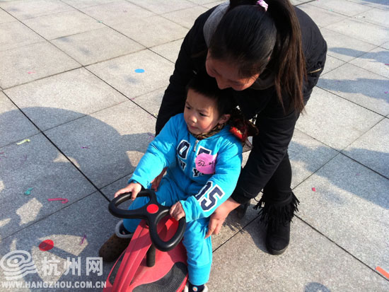 小班的小朋友在父母的陪同下熟练开着扭扭车。