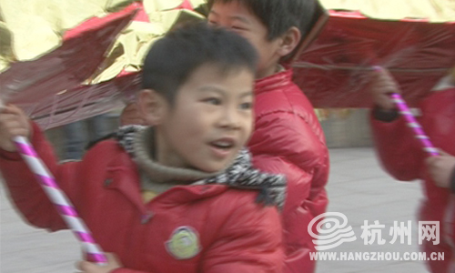 转塘幼儿园的“龙娃”们舞动“金龙”庆新年。