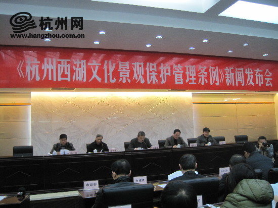 1月6日,杭州市人大常委会举行《杭州西湖文化景观保护管理条例》新闻发布会,对《条例》内容做进一步解释说明。