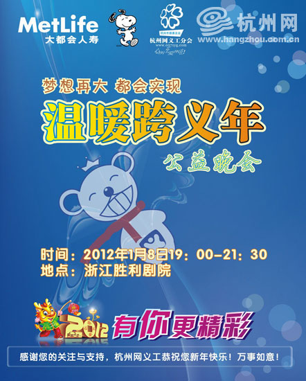 2012年1月8日晚19点,浙江胜利剧院,杭州网义工分会2011年度公益晚会,邀您来参加!