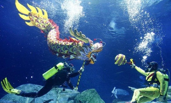 水中舞龙迎龙年