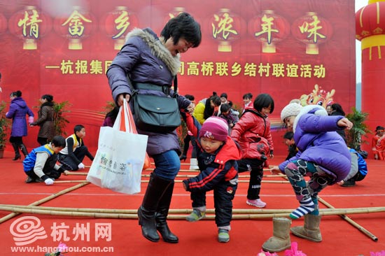 欢快的竹竿游戏,小朋友们人是跳过去了——鞋子却被夹了下来。