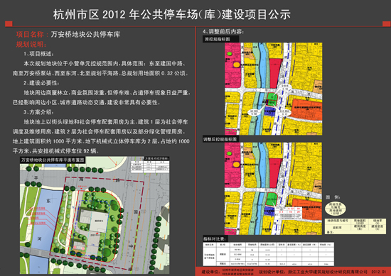 本次项目的公示时间自2012年1月13日至2月3日,春节期间红楼不开放,但市民朋友仍可在“杭网议事厅”中找到公示专题:杭州市区2012年公共停车场(库)建设项目公示(第一批)。如有意见建议,可在专题页面下留言,也可拨打以下电话咨询或反馈: