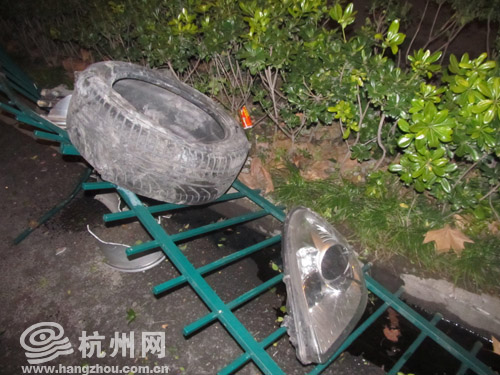 车的前轮整个被撞断,大灯也飞了出去(朱鑫华摄)