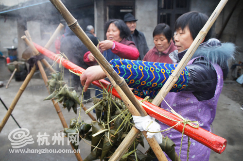 刚煮熟的粽子还冒着热气
