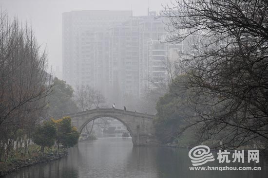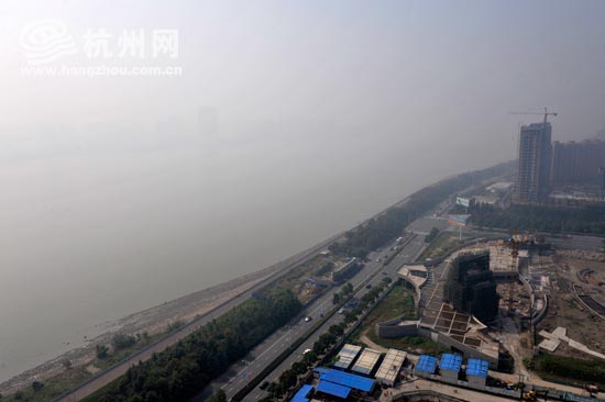 2011年为杭州属霾天气多发年份。(图为早上10点的钱塘江边。)