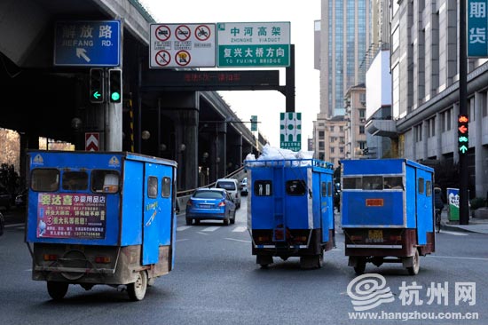 杭州网讯 2月2日,农历正月十一。下午4点,三辆外地牌照的摩托三轮车穿行在中河路上。途经庆春路路口时三辆车靠边停了下来,一扇车门打开,一脸疲惫的老吕探出头来。