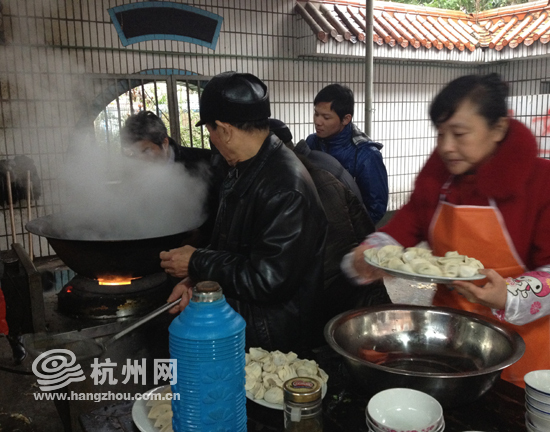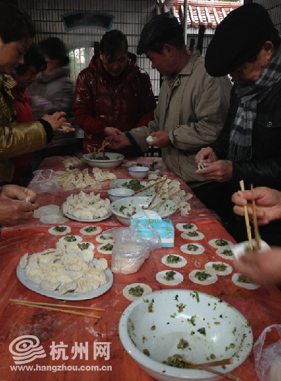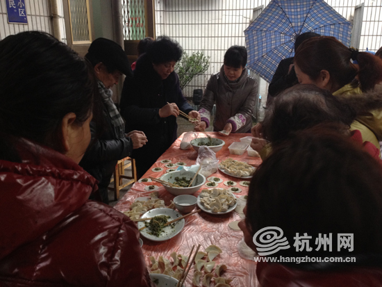 果然,当今天早上杭州网记者来到现场时,通过活动熟络起来的居民义工们就已经分配好了流水线:心灵手巧的负责包饺子,手脚麻利的负责分饺子馅,经验老到的负责煮饺子,还有看火、传菜、收拾碗筷等各种打下手工作,让大家忙得不亦乐乎。