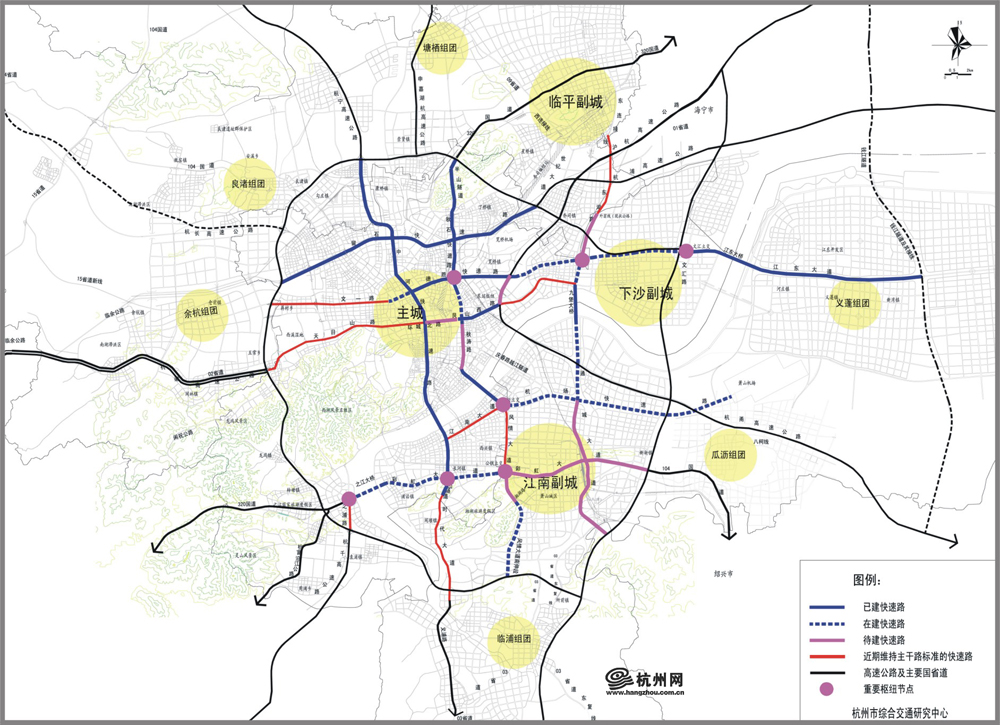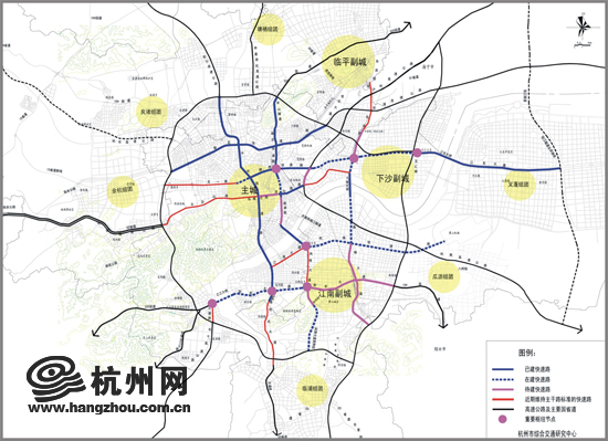 “28”条框架性主次干道分别为吉鸿路、九沙大道、沿江大道、同协路、紫金港路、余杭塘路、丁桥东路等28条主次干道。