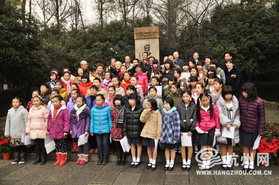 尽管天公不作美,但今天的柳浪闻莺如同春日般温暖。中日数十名小朋友顶着寒风、冒着雨雪,在“日中不再战”纪念碑前用歌声交流友情。