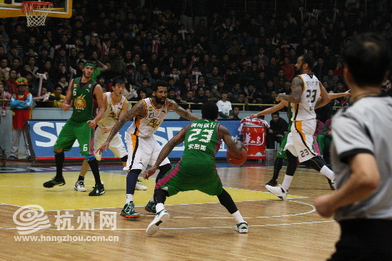 CBA赛场上的浙江德比素来火花四溅,本场比赛又将直接决定两队能否进军季后赛,还有钱德勒和JR两位NBA球星助阵,球市火爆争议场面不断也就完全在情理之中了。杭州体育馆今天的上座率达到了空前的爆满,就连过道里都站满了人,更别说球馆外面还有不少未能买到门票的球迷。比赛过程中,球迷们为主队的每一次得分而呐喊助威,而客场作战的JR也得到了不少欢呼。