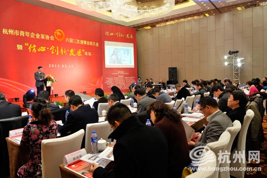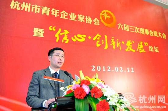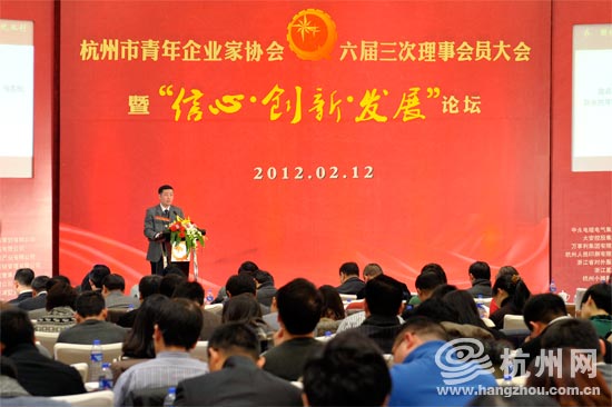 杭州网讯 2月12日下午,杭州市青年企业家协会六届三次理事会员暨“信心•创新•发展”论坛举行。国务院发展研究中心金融研究所副所长巴曙松,省发改委主任孙景淼,共青团杭州市委书记黄海峰等领导及理事会员300余名企业家到会。