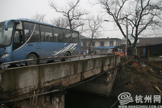 事发后,又一辆大巴车驶过桥面,这座桥被附近居民认为有很大的安全隐患